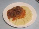 Готового кролика вытаскиваем из кастрюли выкладываем на блюдо и поливаем белым соусом.